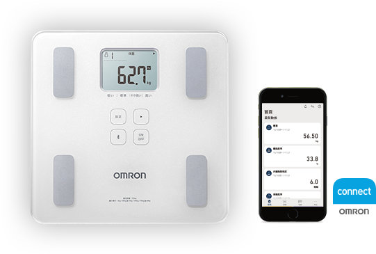 產品具有藍牙傳輸功能。將量測到的數據上傳至「OMRON connect」,輕鬆查看體組成變化。